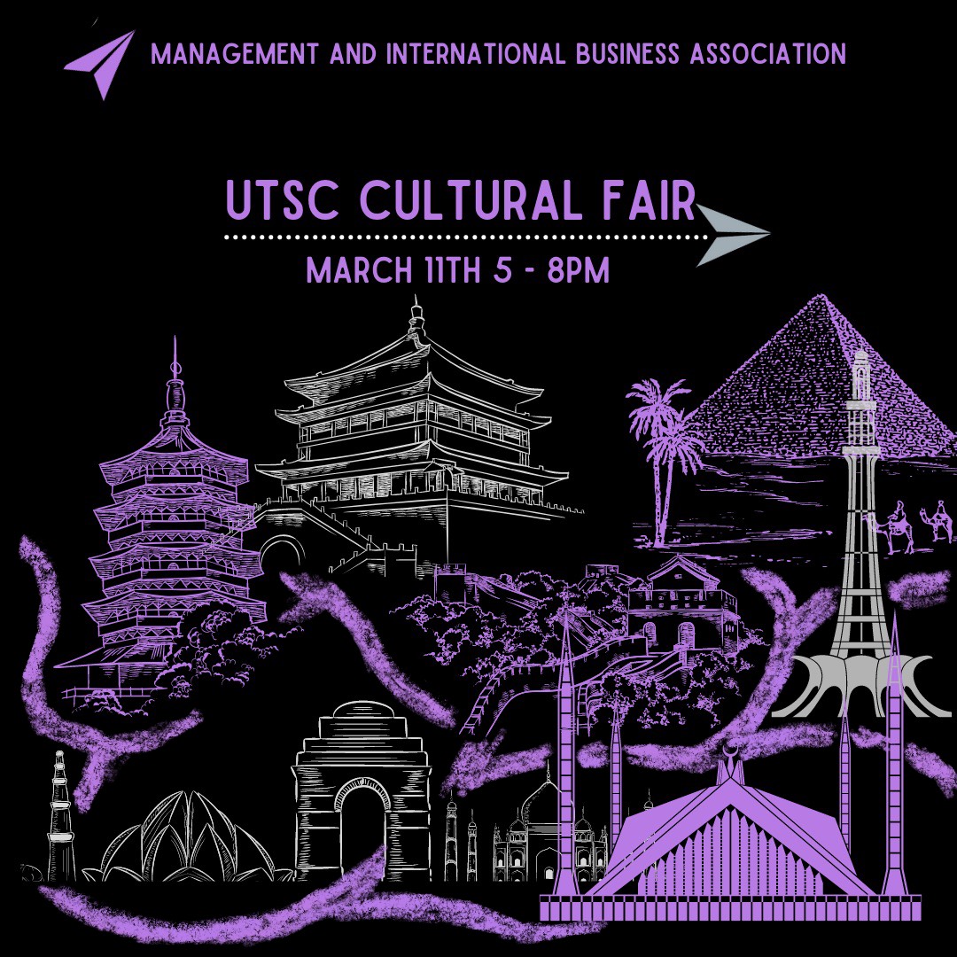 It’s your lucky day! The Management and International Business Association (MIBA) is satisfying all your cravings in one event: the UTSC Cultural Fair on Friday, March 11th 5-8pm @ IC. Join us for an evening of conversing, eating, and dancing under the melody of our multicultural playlist tailored for the occasion.